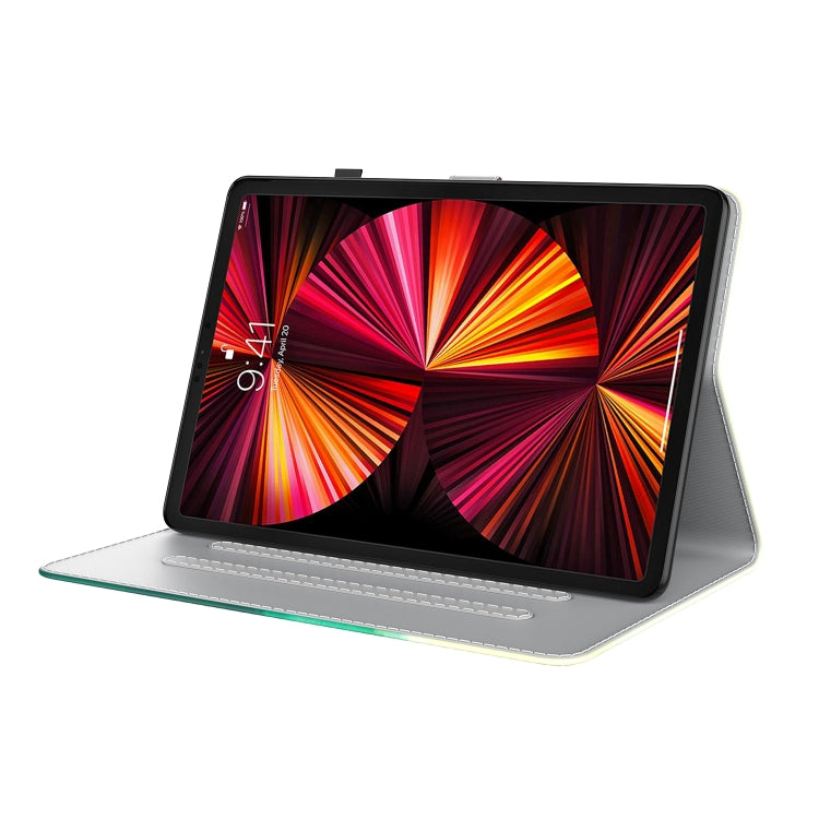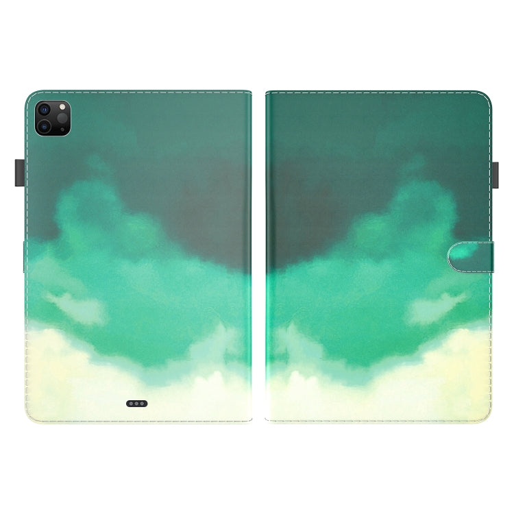 For iPad Pro 11 2022 / 2021 / 2018 / Air 2020 10.9 Watercolor Pattern Skin Feel Magnetic Leather Tablet Case with Holder & Card Slots & Photo Frame & Sleep / Wake-up Function(Cyan Green)