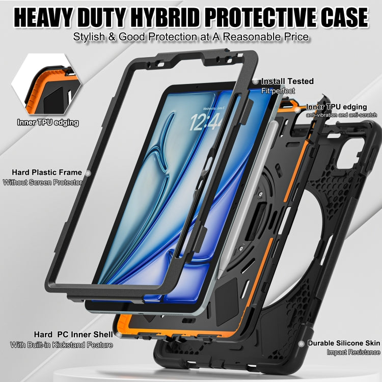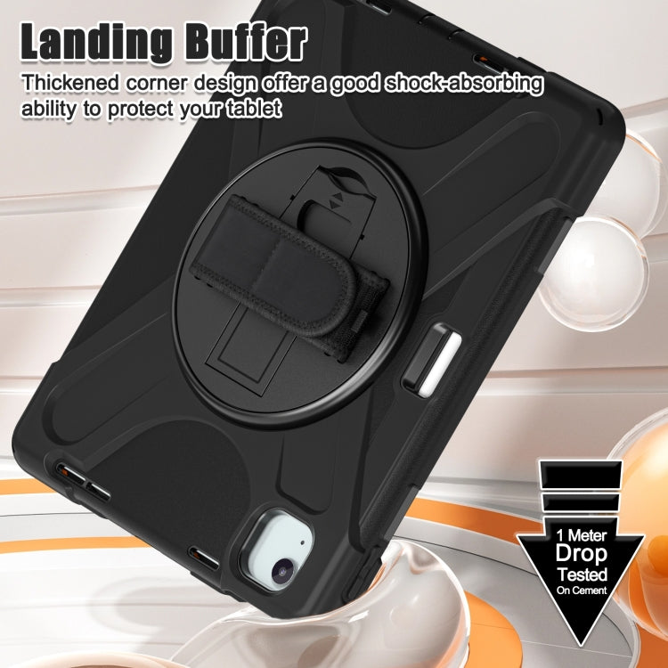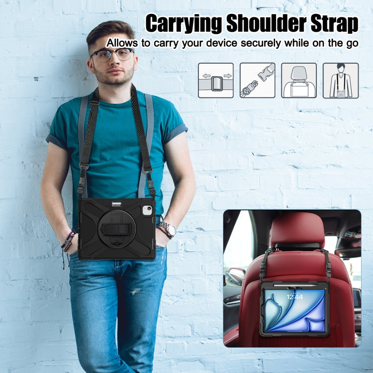 For iPad Air 11 2024 / Air 5 10.9 2022 / Air 4 10.9 2020 / Pro 11 2022 /2021 / 2018 / 2020 Silicone + PC Protective Tablet Case with Holder & Shoulder Strap(Black)