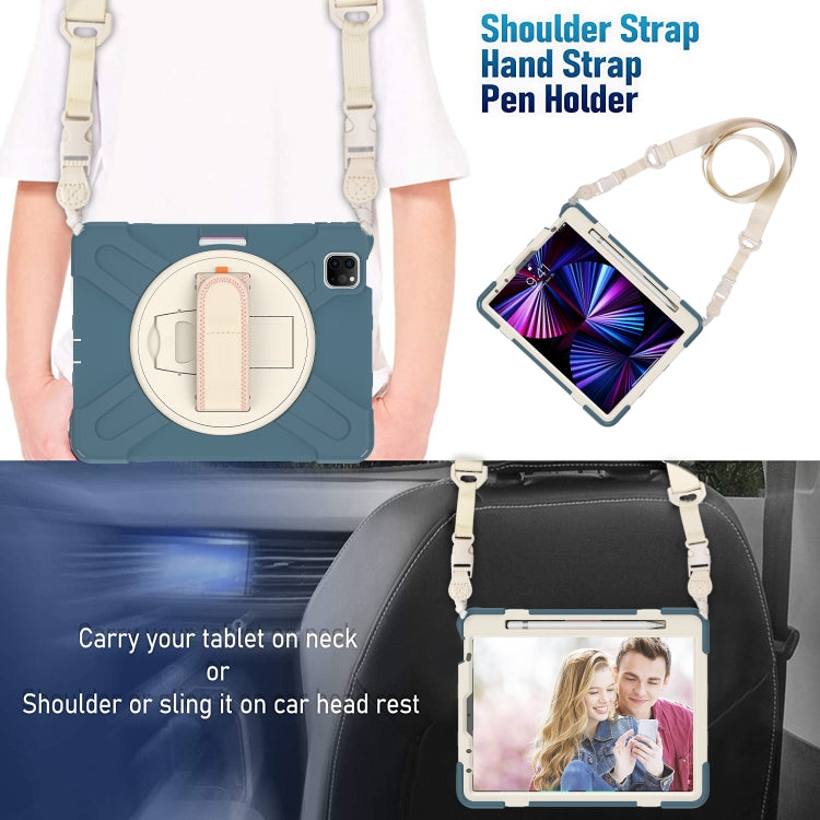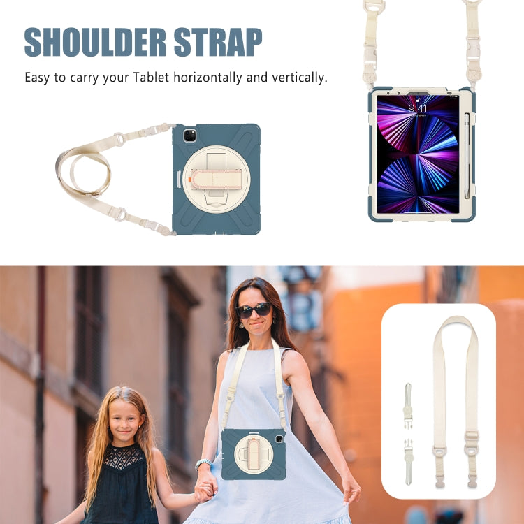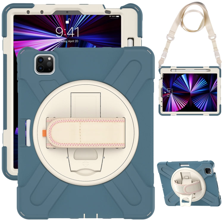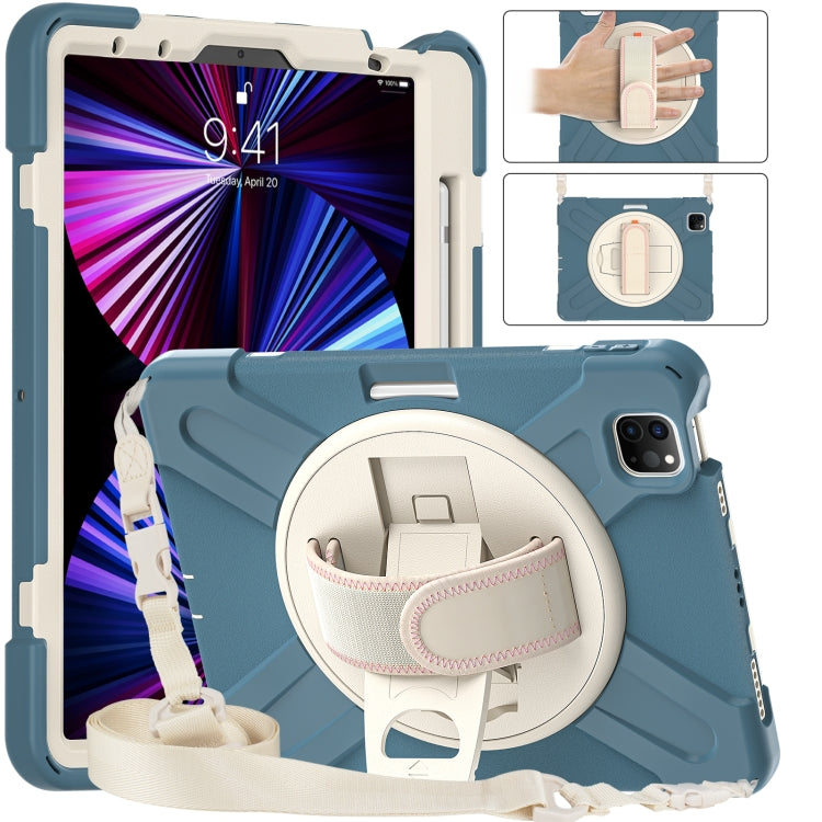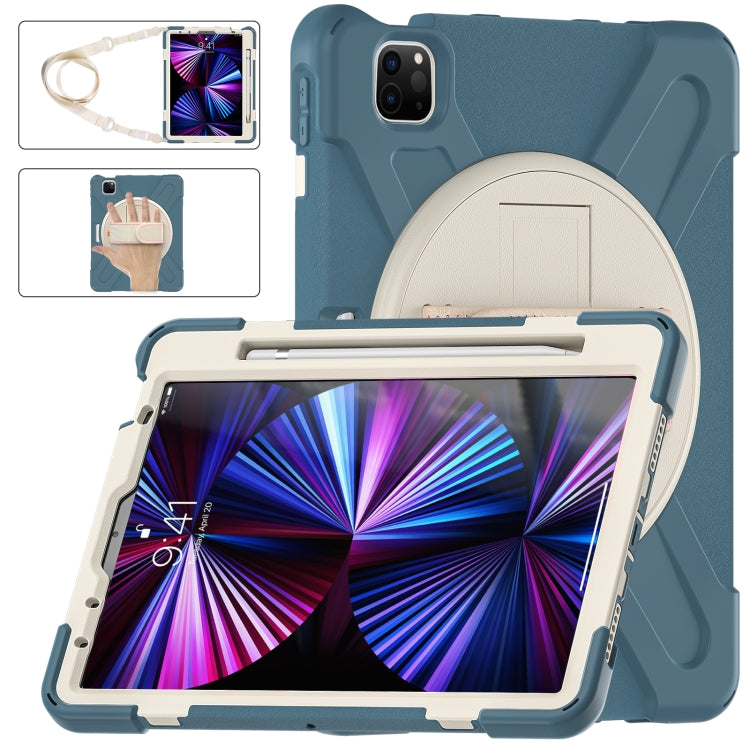 For iPad Air 11 2024 / Air 5 10.9 2022 / Air 4 10.9 2020 / Pro 11 2022 /2021 / 2018 / 2020 Silicone + PC Protective Tablet Case with Holder & Shoulder Strap(Cornflower Blue)