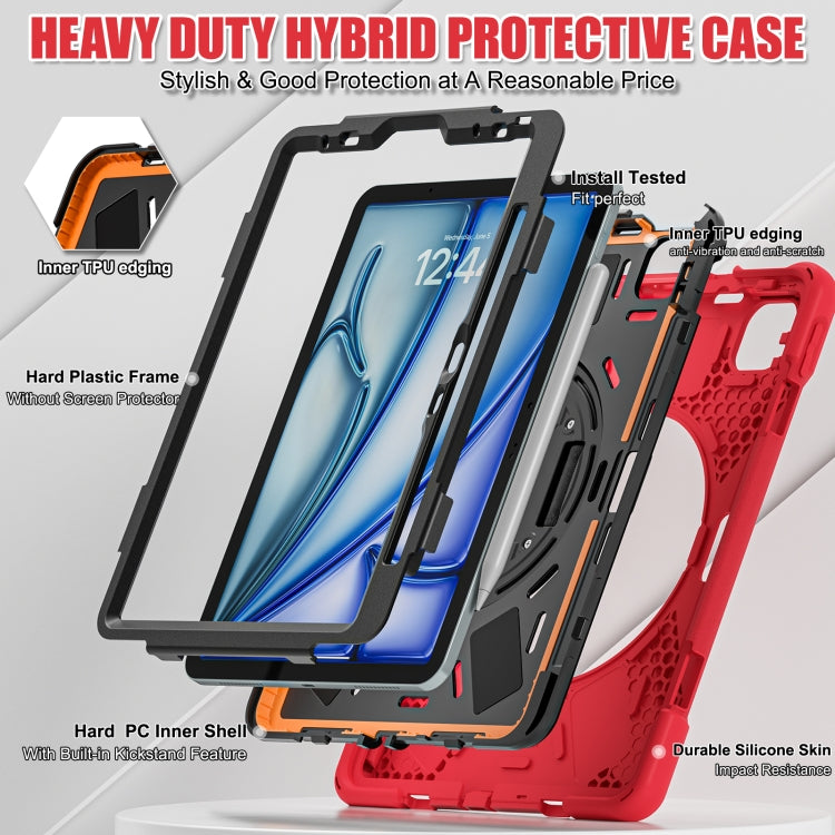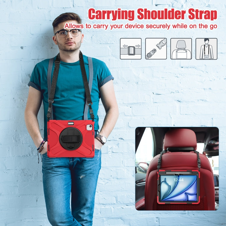 For iPad Air 11 2024 / Air 5 10.9 2022 / Air 4 10.9 2020 / Pro 11 2022 /2021 / 2018 / 2020 Silicone + PC Protective Tablet Case with Holder & Shoulder Strap(Red)