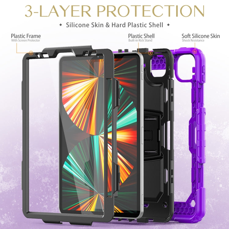 For iPad Pro 11 2022 / 2021 / 2020 / 2018 Silicone + PC Tablet Case with Holder(Purple)