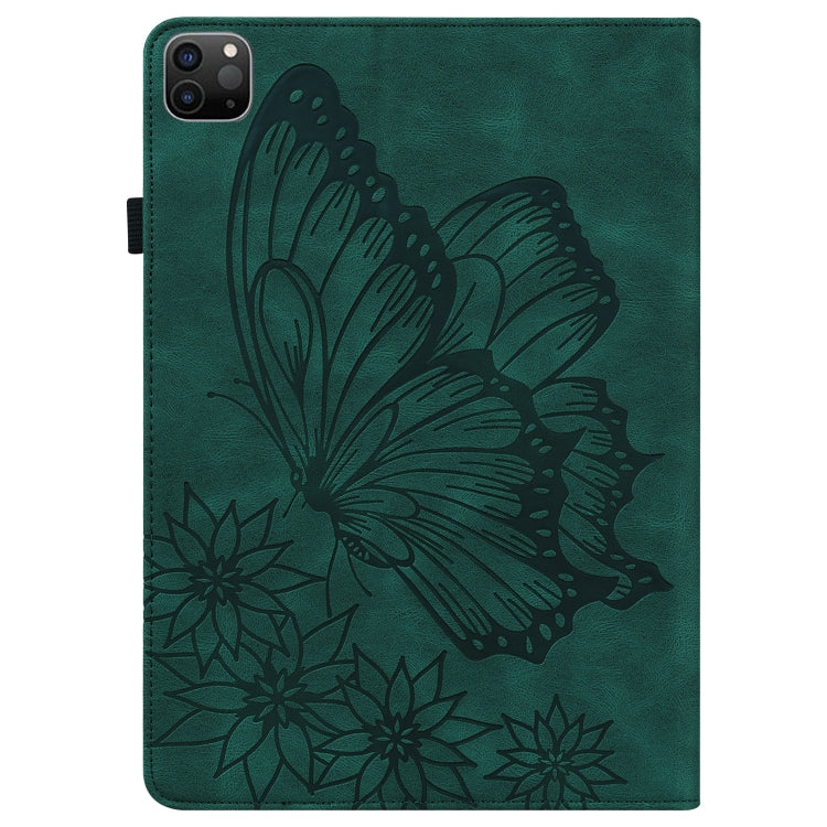 For iPad Pro 11 2022 / 2021 / 2020 / Air 2020 10.9 / 11 2024 Big Butterfly Embossed Smart Leather Tablet Case(Green)