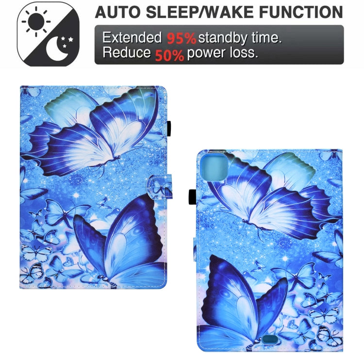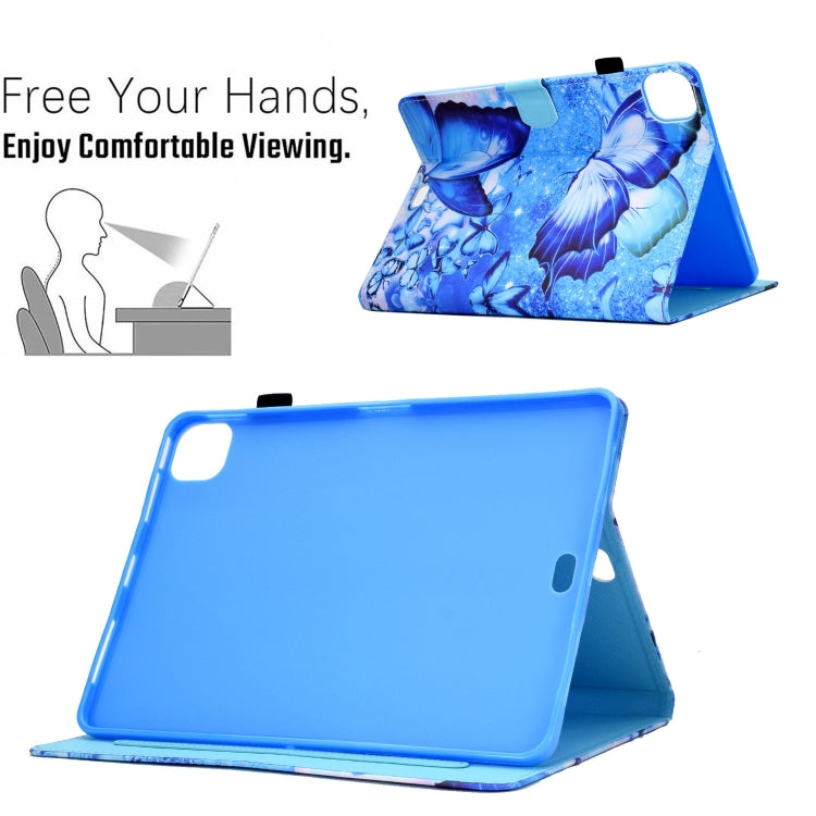 For iPad Pro 11 2022 / 2021 / 2020 Sewing Pen Slot Leather Tablet Case(Butterflies)