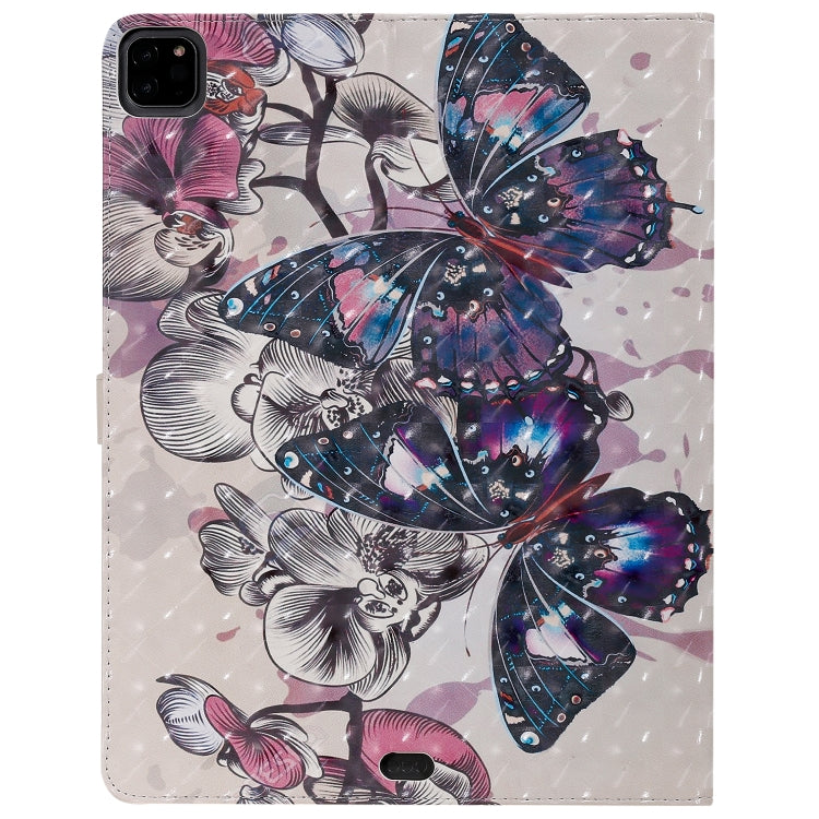 For iPad Pro 12.9 (2020) 3D Colored Drawing Horizontal Flip Leather Tablet Case with Holder & Card Slot & Wallet(Black Butterfly)