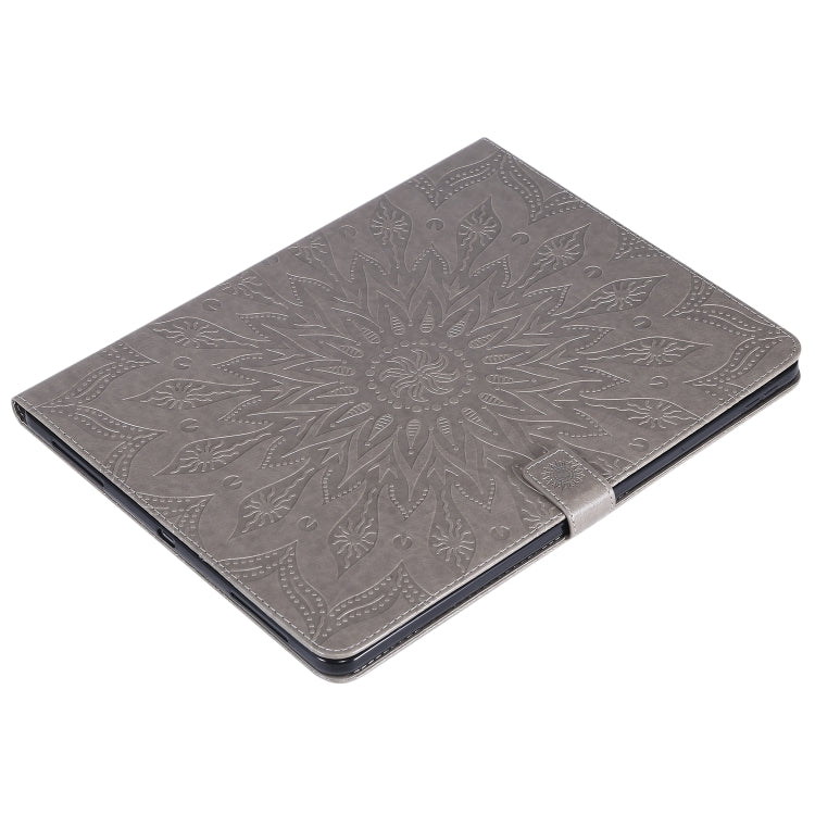 For iPad Pro 12.9 (2020) & Pro 12.9 (2018) Pressed Printing Sunflower Pattern Horizontal Flip PU Leather Tablet Case with Holder & Card Slots & Wallet(Grey)