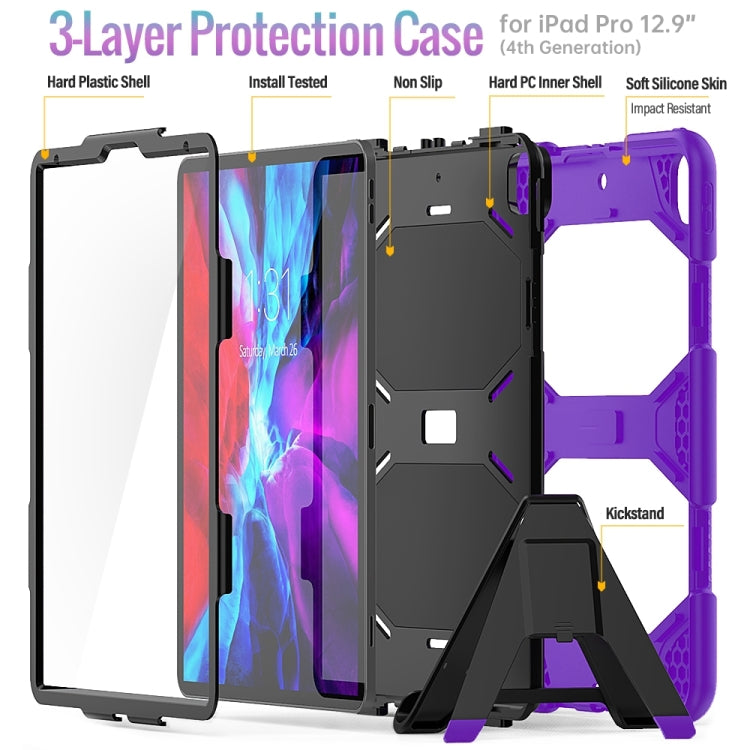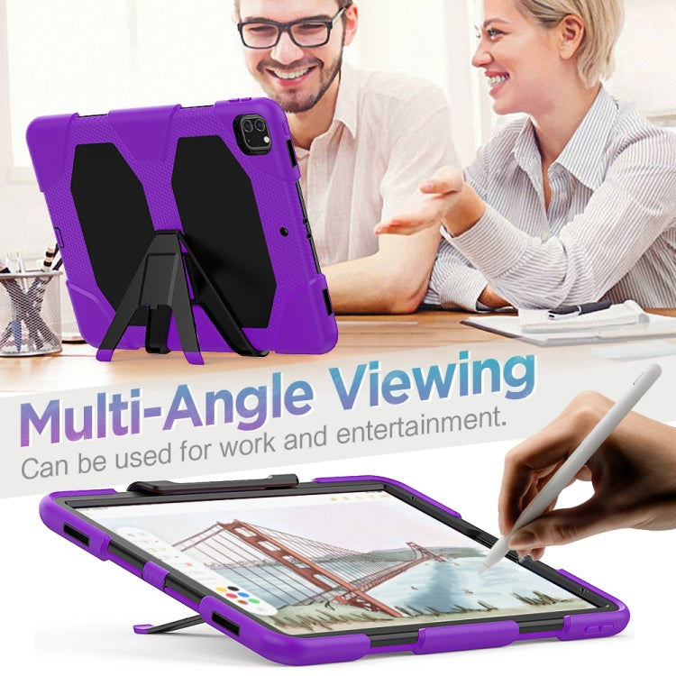 For iPad Pro 12.9 inch (2020) Shockproof Colorful Silicon + PC Protective Tablet Case with Holder & Shoulder Strap & Hand Strap (Purple)