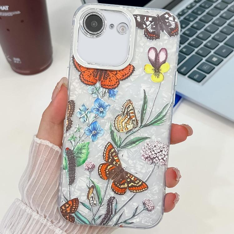 For iPhone 16e Electroplating Flowers Plants Texture TPU Phone Case(Butterfly Love Flower FL17)
