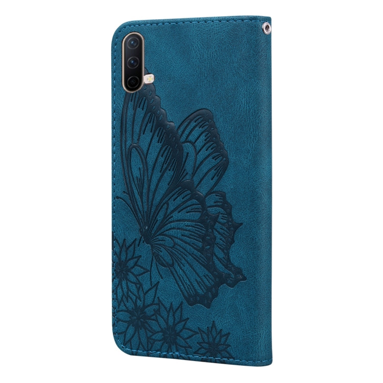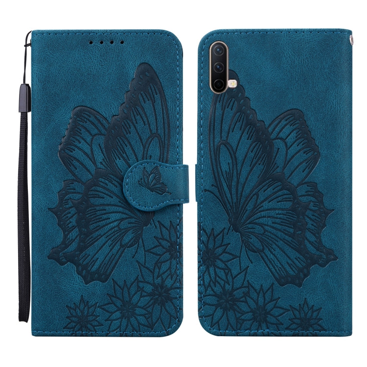 For OnePlus Nord CE 5G Retro Skin Feel Butterflies Embossing Horizontal Flip Leather Case with Holder & Card Slots & Wallet(Blue)