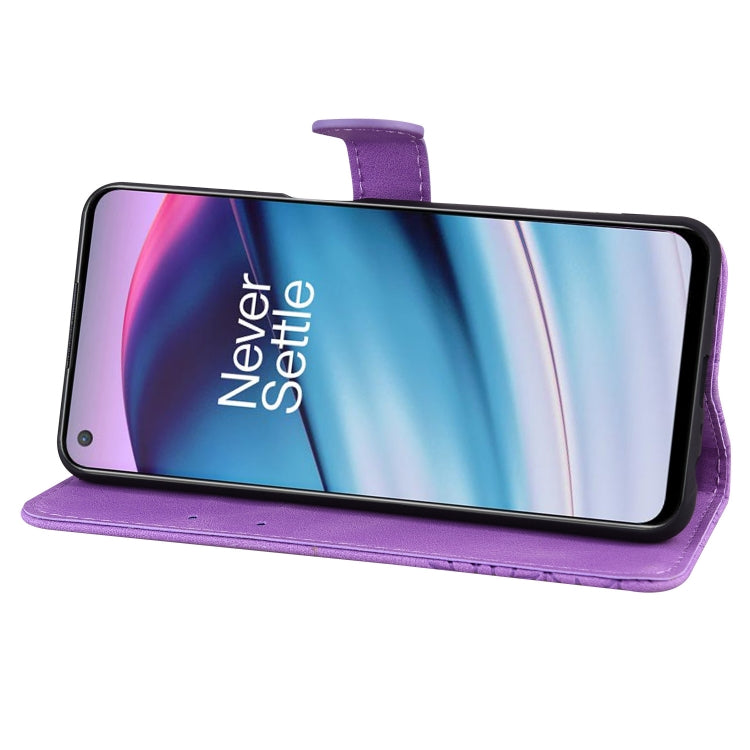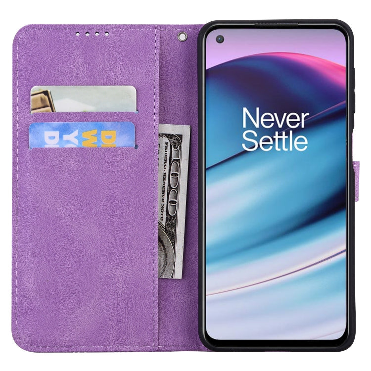 For OnePlus Nord CE 5G Retro Skin Feel Butterflies Embossing Horizontal Flip Leather Case with Holder & Card Slots & Wallet(Purple)