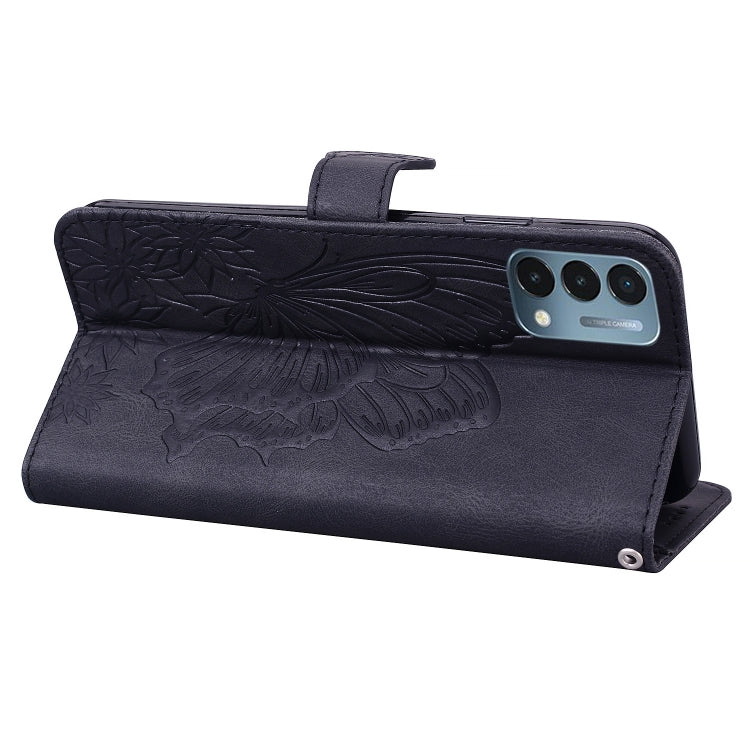 For OnePlus Nord N200 Retro Skin Feel Butterflies Embossing Horizontal Flip Leather Case with Holder & Card Slots & Wallet(Black)