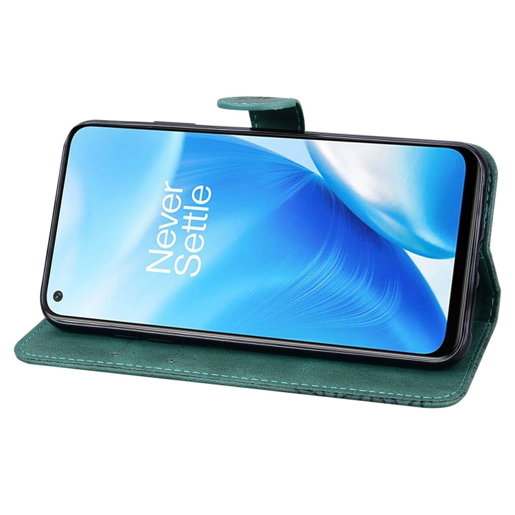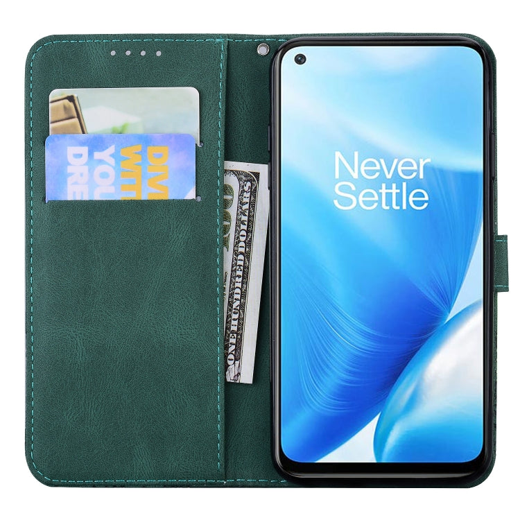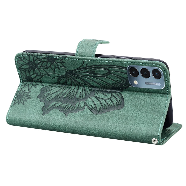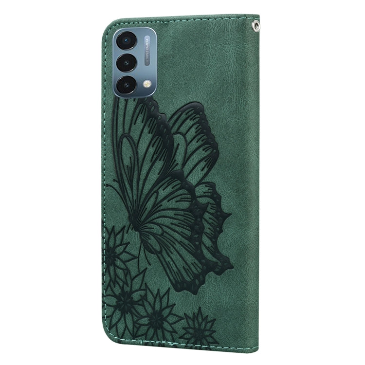 For OnePlus Nord N200 Retro Skin Feel Butterflies Embossing Horizontal Flip Leather Case with Holder & Card Slots & Wallet(Green)