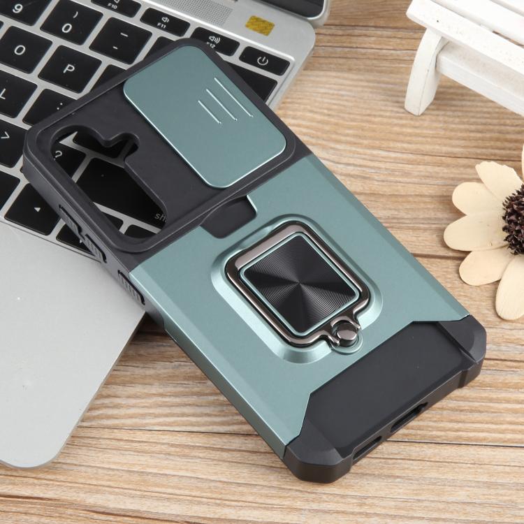 For Samsung Galaxy S25 5G Camera Shield Card Slot PC+TPU Phone Case(Dark Green)