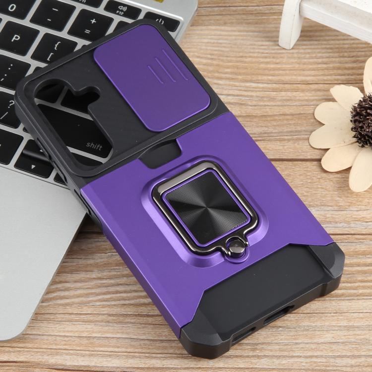 For Samsung Galaxy S25 5G Camera Shield Card Slot PC+TPU Phone Case(Purple)