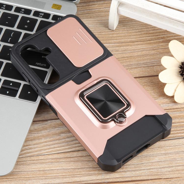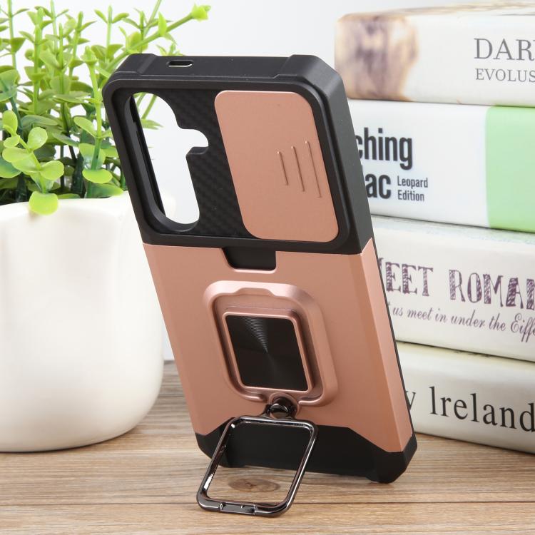 For Samsung Galaxy S25 5G Camera Shield Card Slot PC+TPU Phone Case(Rose Gold)