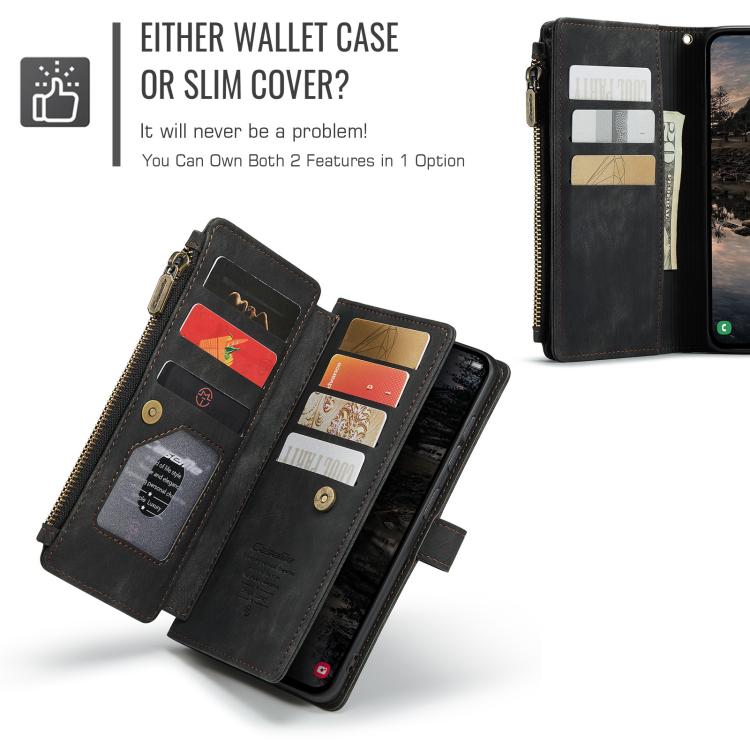 For Samsung Galaxy S25+ 5G CaseMe C30 Card Slots Zipper Wallet Leather Phone Case(Black)