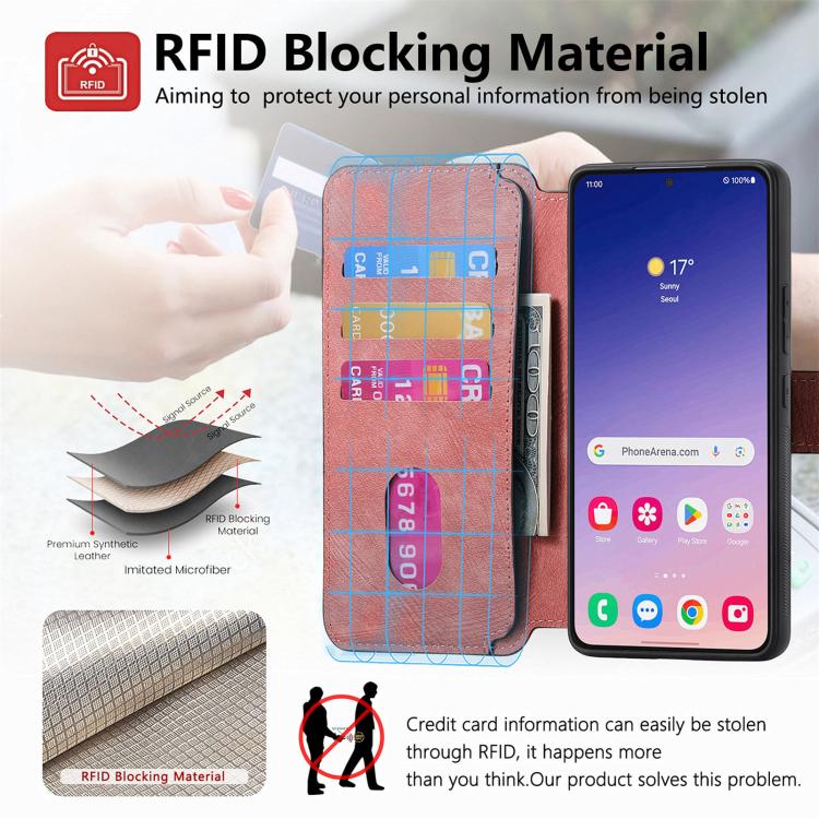 For Samsung Galaxy S25 5G CaseNeo MagSafe RFID Anti-theft Retro Leather Phone Case(Pink)