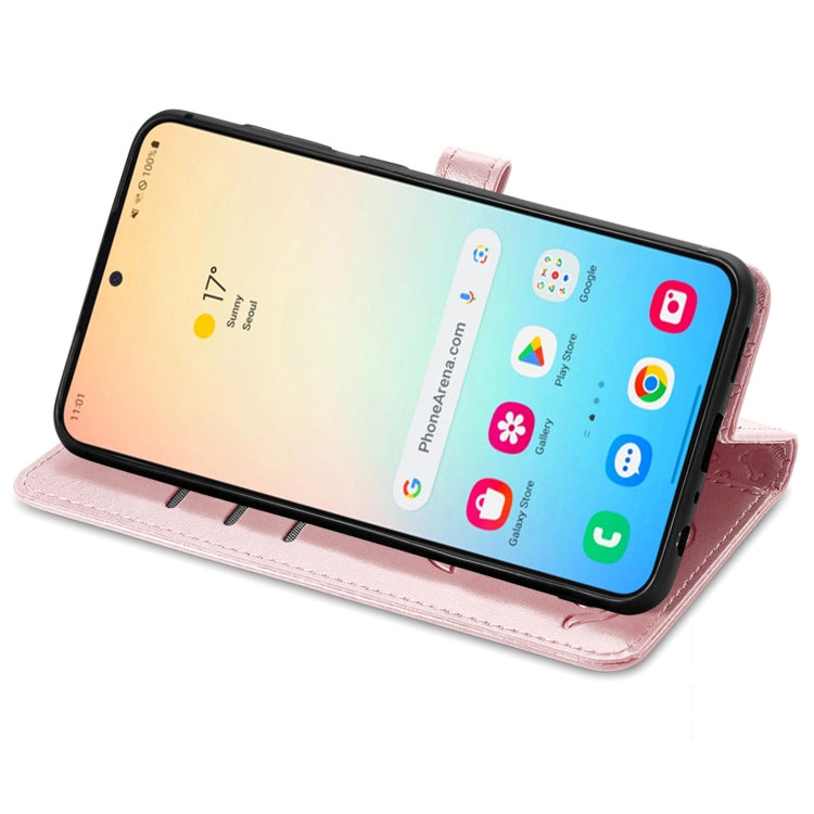 For Samsung Galaxy S25 5G Cat and Dog Embossed Leather Phone Case(Rose Gold)