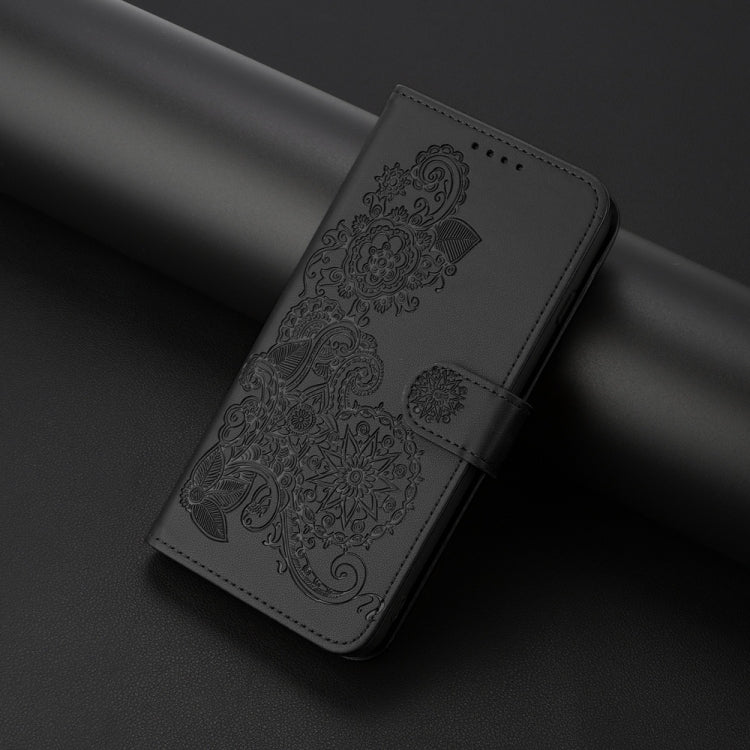 For Samsung Galaxy S25 5G Datura Flower Embossed Flip Leather Phone Case(Black)