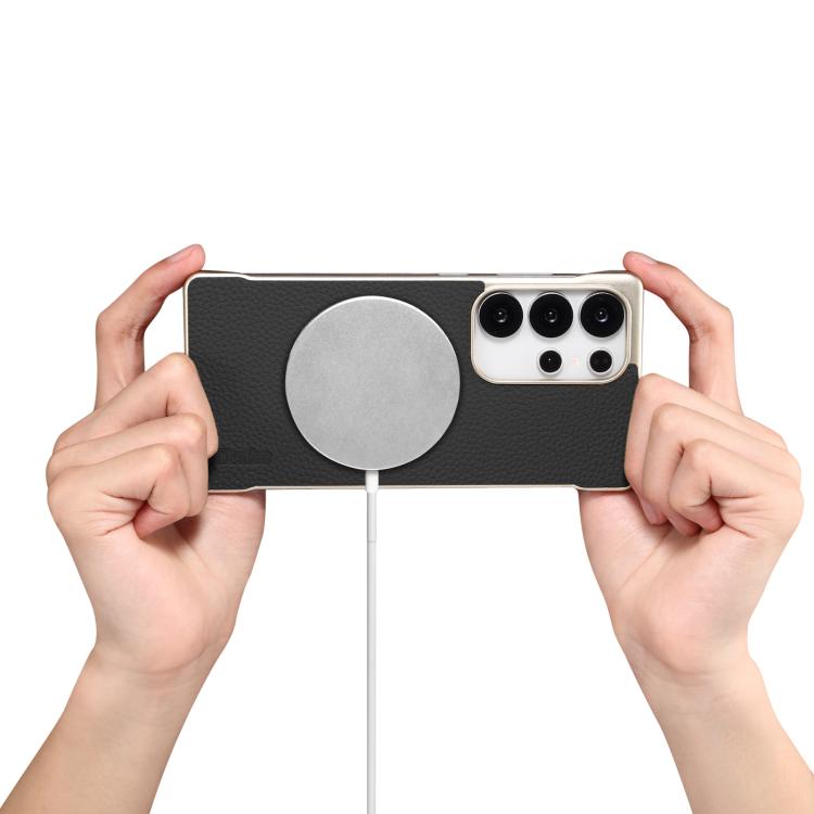For Samsung Galaxy S25+ 5G Denior A20 Genuine Leather Litchi Texture MagSafe Frameless Phone Case(Black)