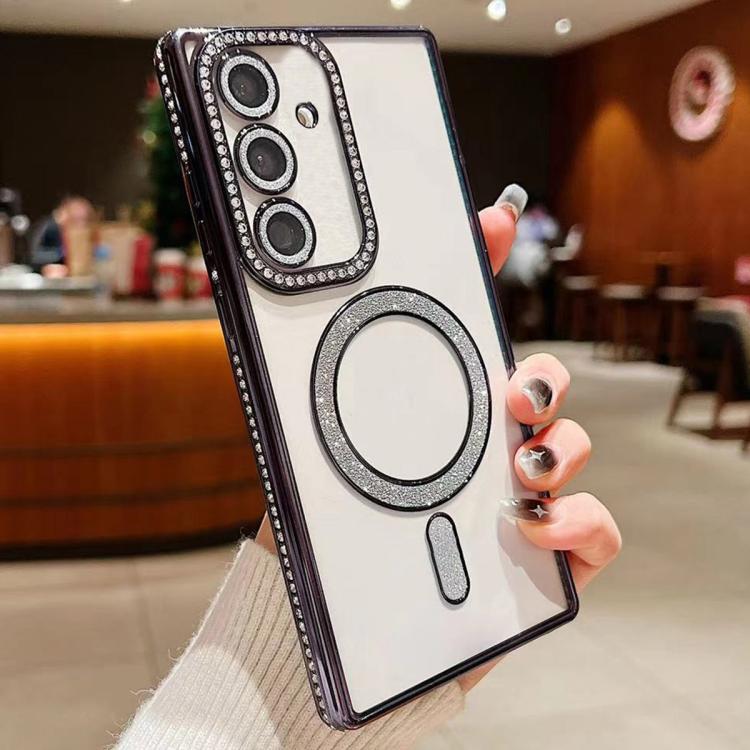 For Samsung Galaxy S25+ 5G Diamond Gradient Plated MagSafe TPU Phone Case(Black)