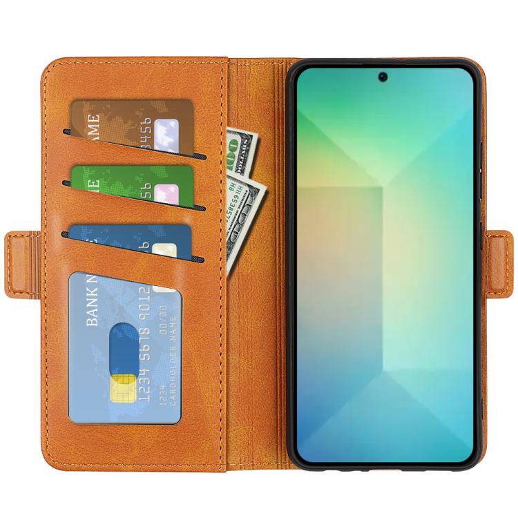 For Samsung Galaxy S25 5G Dual-side Magnetic Buckle Horizontal Flip Leather Phone Case(Yellow)