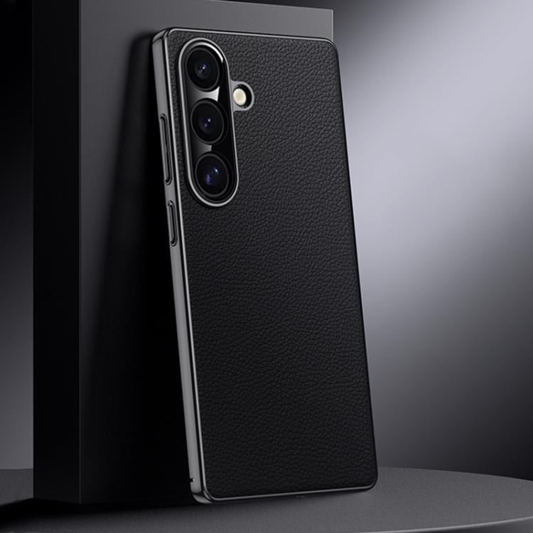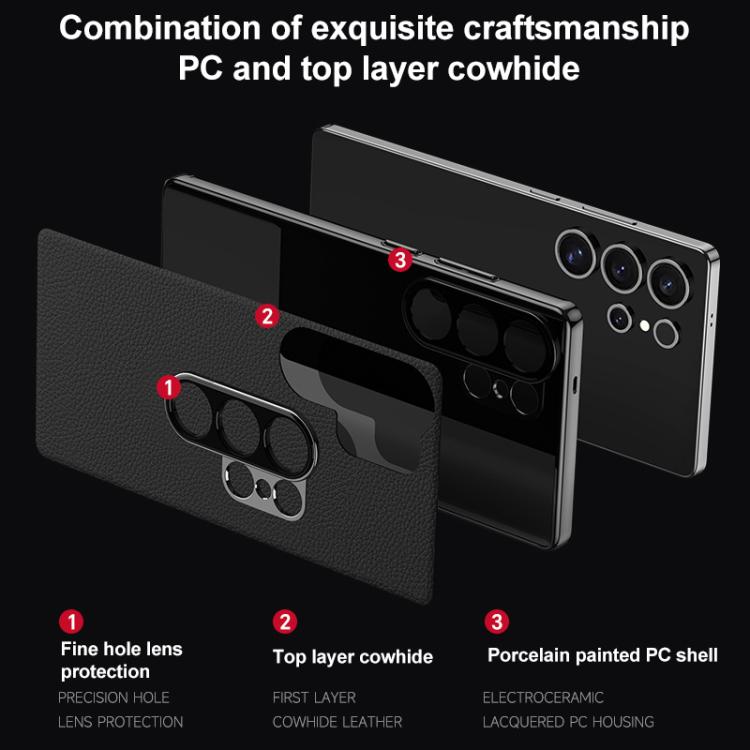 For Samsung Galaxy S25+ 5G Genuine Leather PC Phone Case(Black)