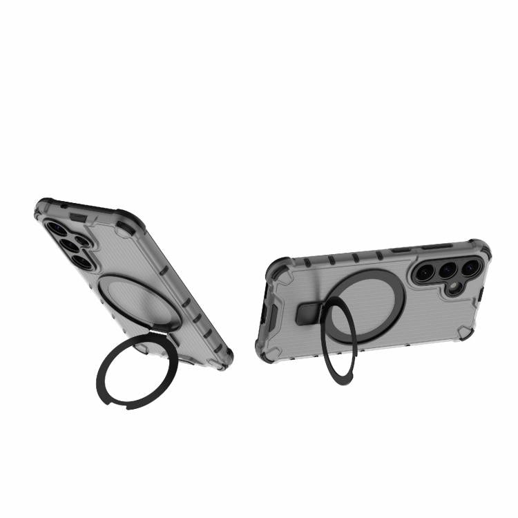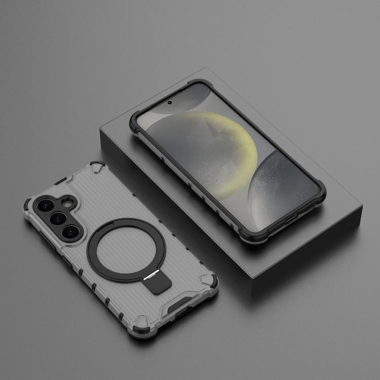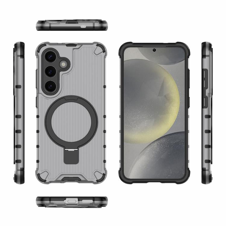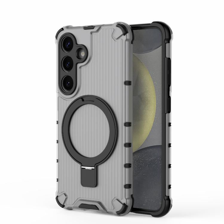 For Samsung Galaxy S25 5G Grating 360 Degree Rotating Holder Shockproof Phone Case(Black)