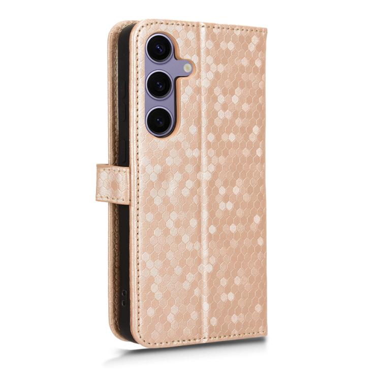 For Samsung Galaxy S25 5G Honeycomb Dot Texture Leather Phone Case(Gold)