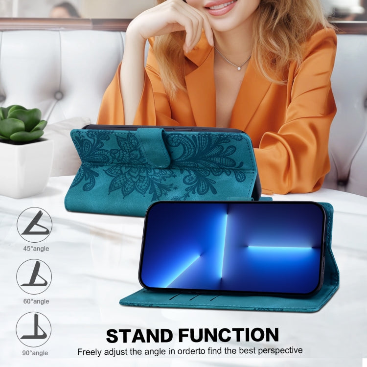 For Samsung Galaxy S25+ 5G Lace Floral Embossed Magnetic Buckle PU Phone Case With Wrist Strap(Green)