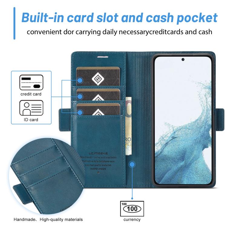 For Samsung Galaxy S25 5G LC.IMEEKE Card Slots Skin Feeling Leather Phone Case(Blue)