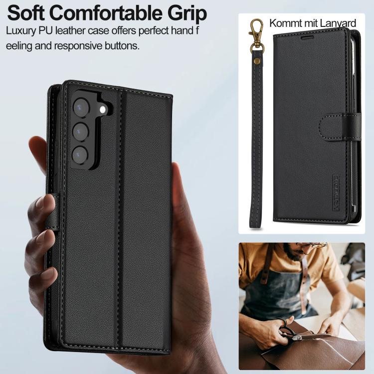 For Samsung Galaxy S25 5G LC.IMEEKE L2 Series Detachable Magsafe PU Phone Case with Lanyard(Black)