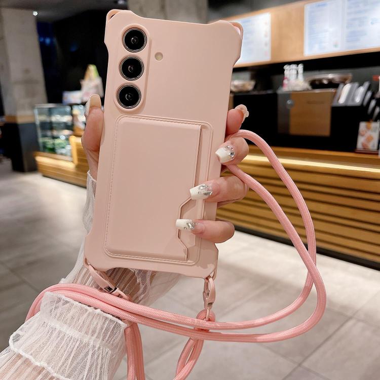 For Samsung Galaxy S25 5G Liquid TPU Card Bag Four Corner Shockproof Phone Case(Pink)