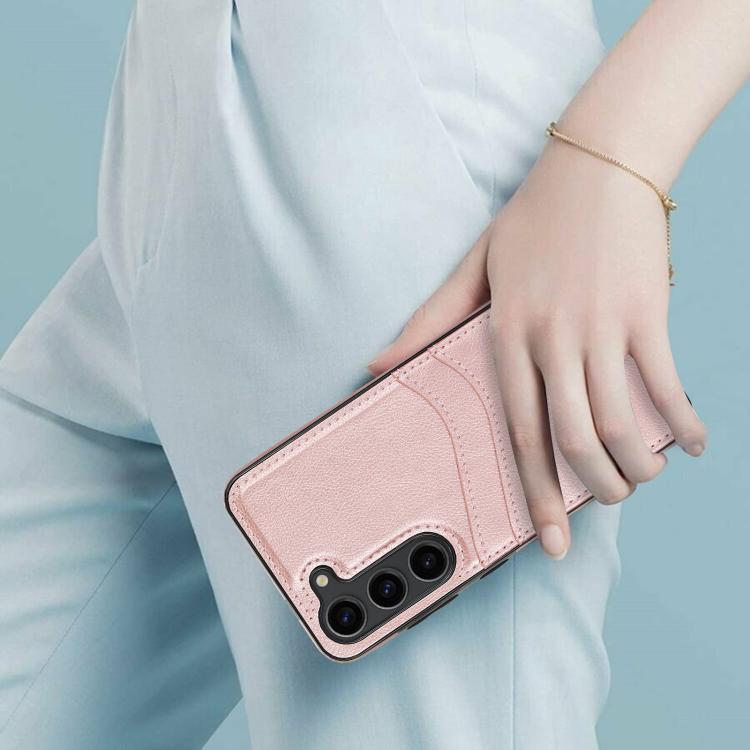 For Samsung Galaxy S25+ 5G Litchi Leather Skin Card Slots Phone Case(Rose Gold)