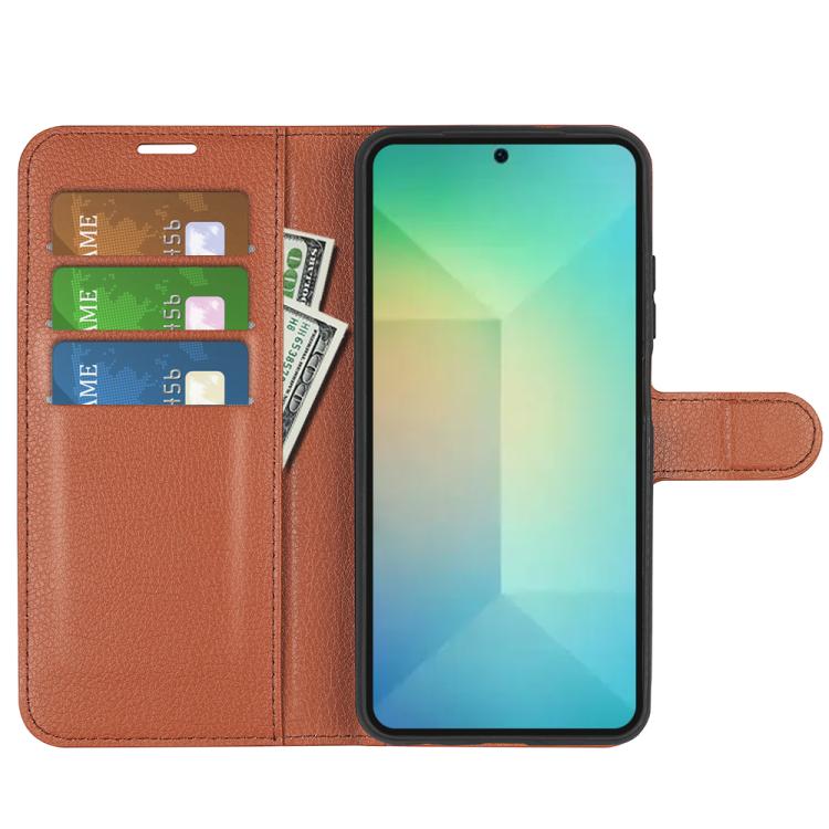 For Samsung Galaxy S25 5G Litchi Texture Horizontal Flip Leather Phone Case with Holder(Brown)