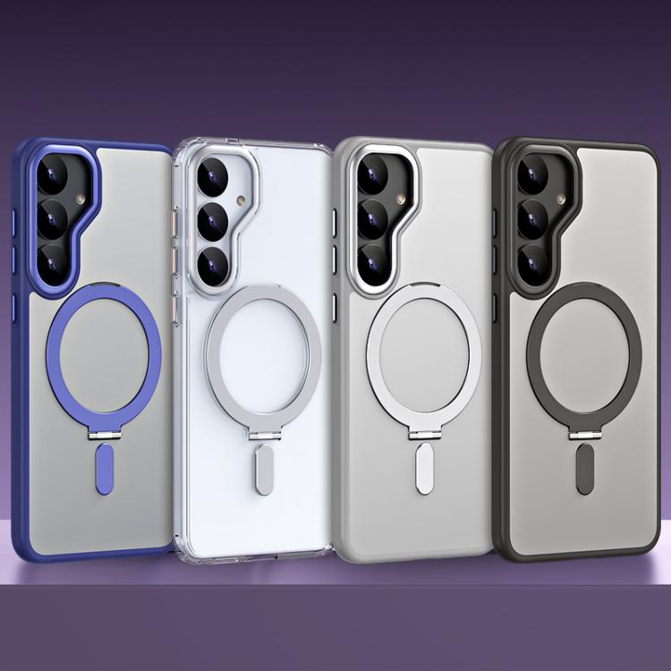 For Samsung Galaxy S25 5G MagSafe Airbag Shockproof Frosted Phone Case with Fold Holder(Silver)