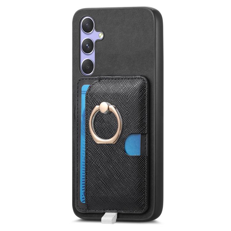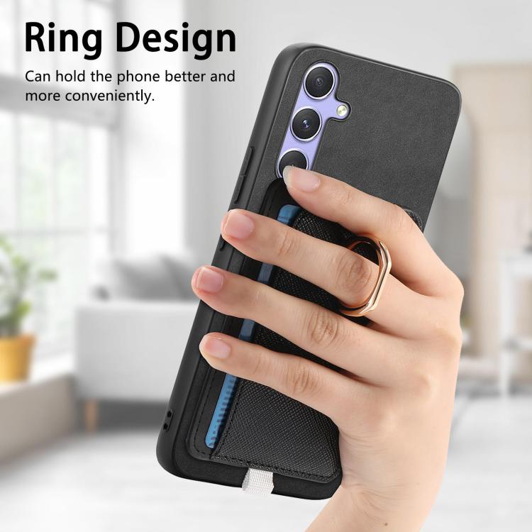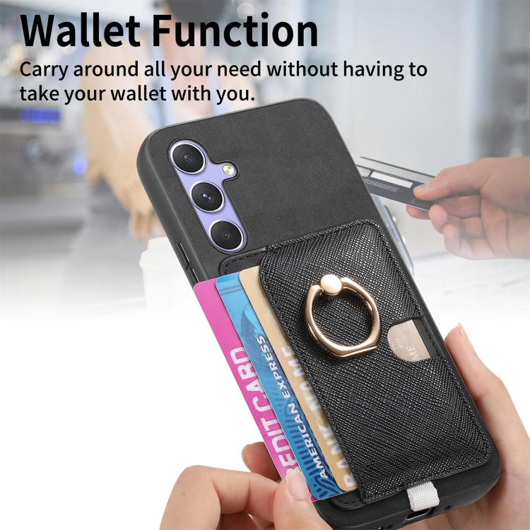 For Samsung Galaxy S25 5G Retro Cross Leather Ring Side Insert Card Bag MagSafe Phone Case(Black)