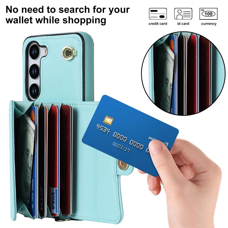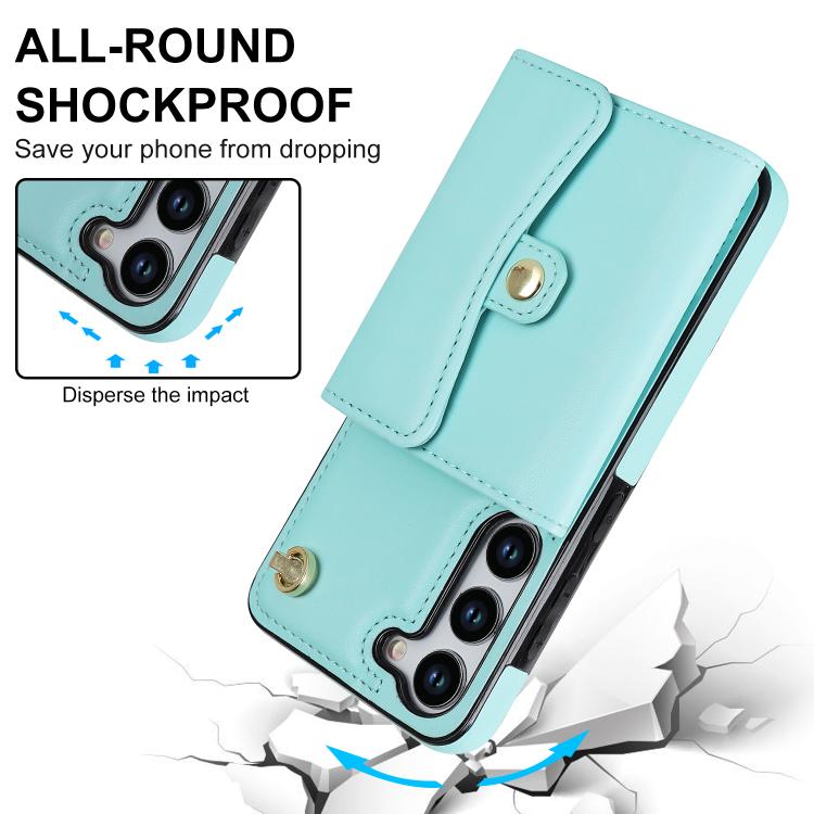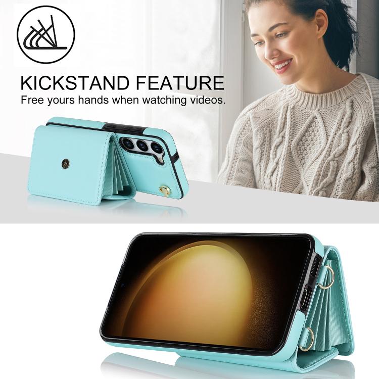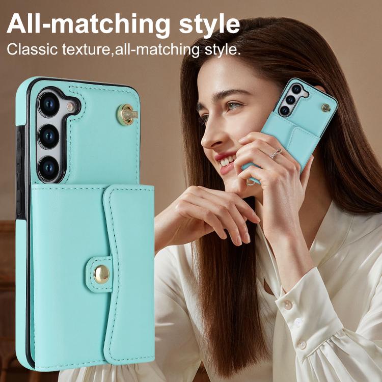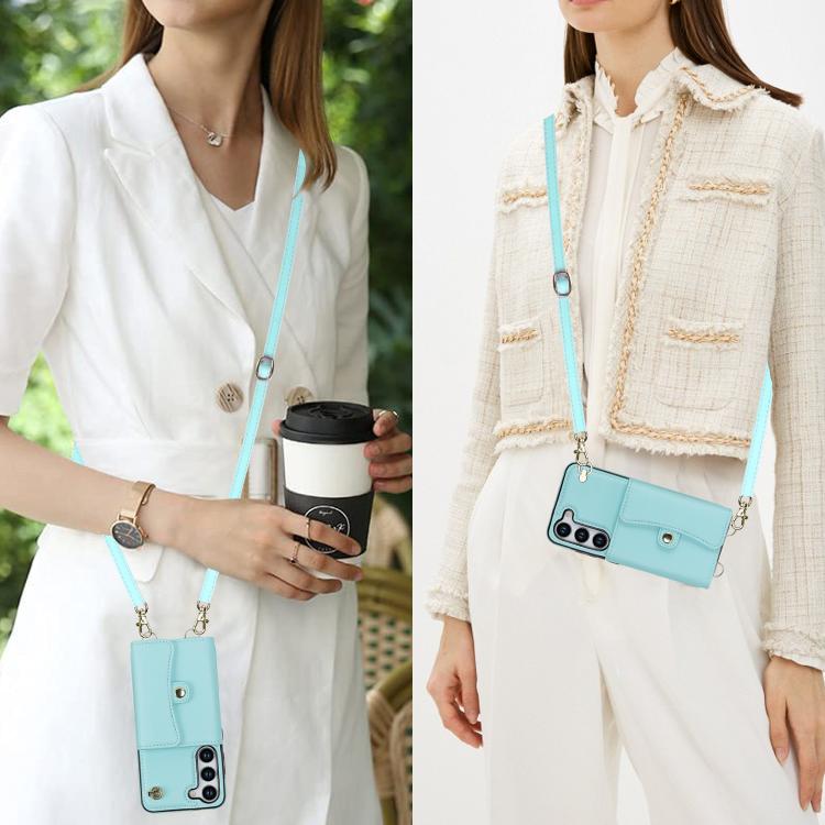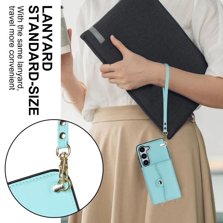 For Samsung Galaxy S25+ 5G RFID Card Slot Phone Case with Long Lanyard(Mint Green)