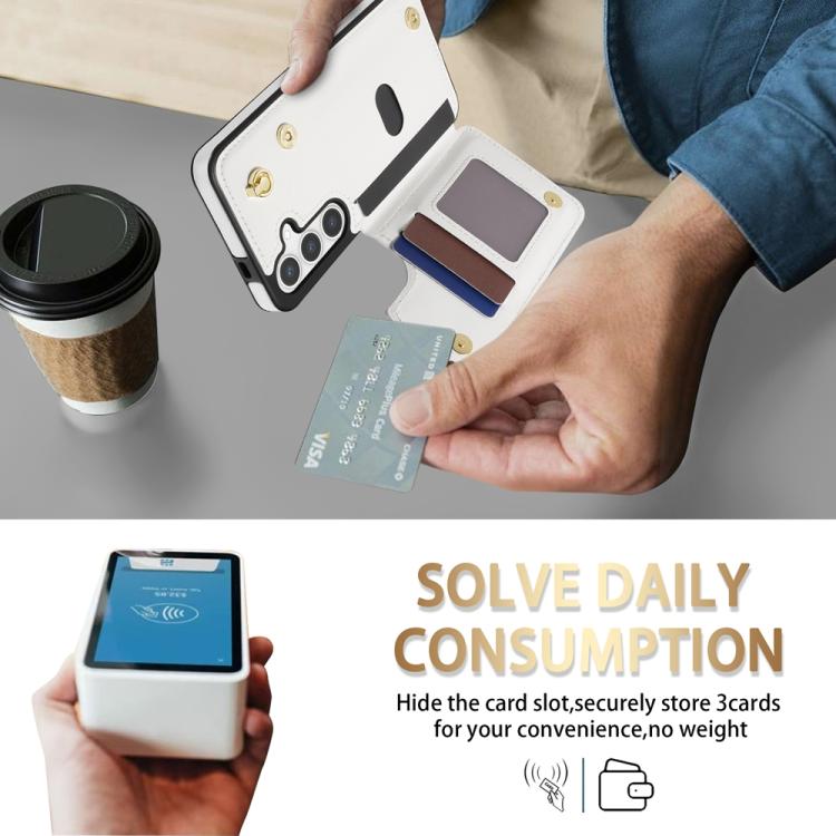 For Samsung Galaxy S25 5G Rhombic Dual Buckle Card Slots Phone Case with Lanyard(White)