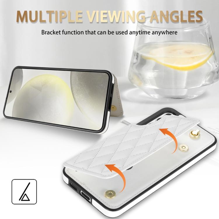For Samsung Galaxy S25+ 5G Rhombic Dual Buckle Card Slots Phone Case with Lanyard(White)