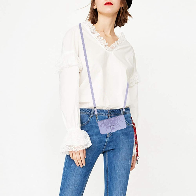 For Samsung Galaxy S25 5G Skin Feel Sun Flower Embossed Flip Leather Phone Case with Lanyard(Purple)