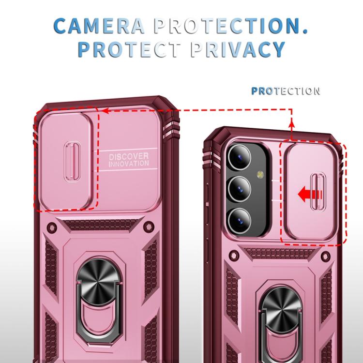 For Samsung Galaxy S25+ 5G Sliding Camshield TPU Hybrid PC Phone Case with Holder(Pink+Rose Red)