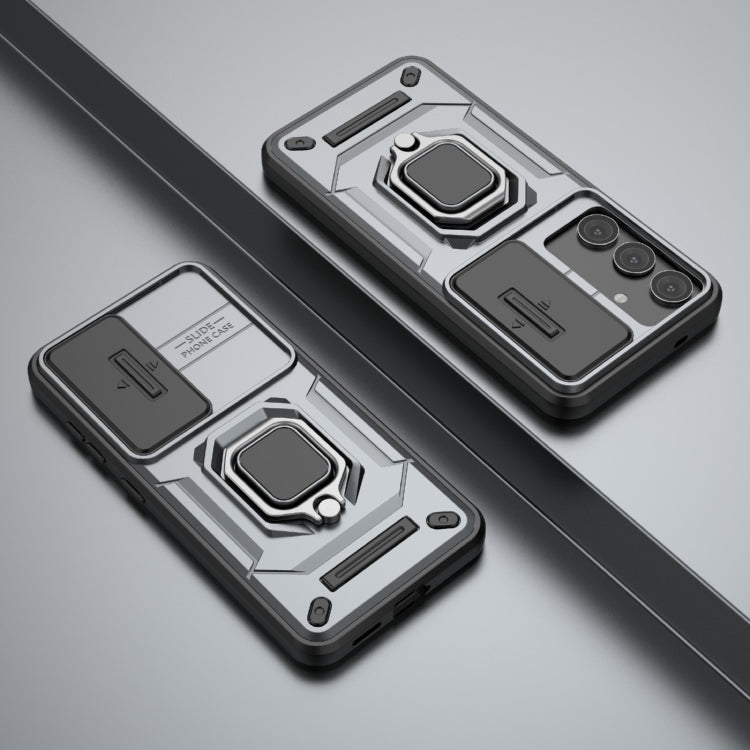 For Samsung Galaxy S25 5G Sliding Camshield TPU + PC Shockproof Phone Case with Holder(Grey)