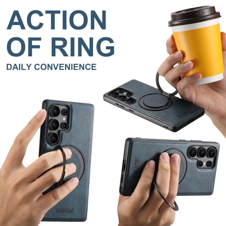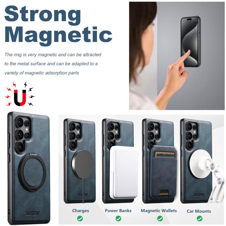 For Samsung Galaxy S25+ 5G Suteni G3 Oil Wax 360 Rotation Holder MagSafe Back Phone Case(Blue)