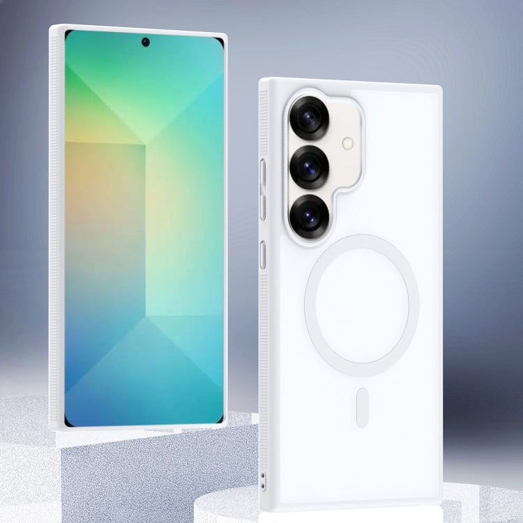 For Samsung Galaxy S25 5G Transparent TPU Hybrid PC Magsafe Phone Case(White)