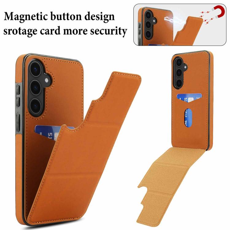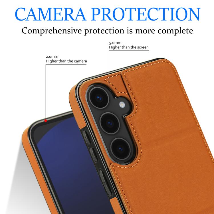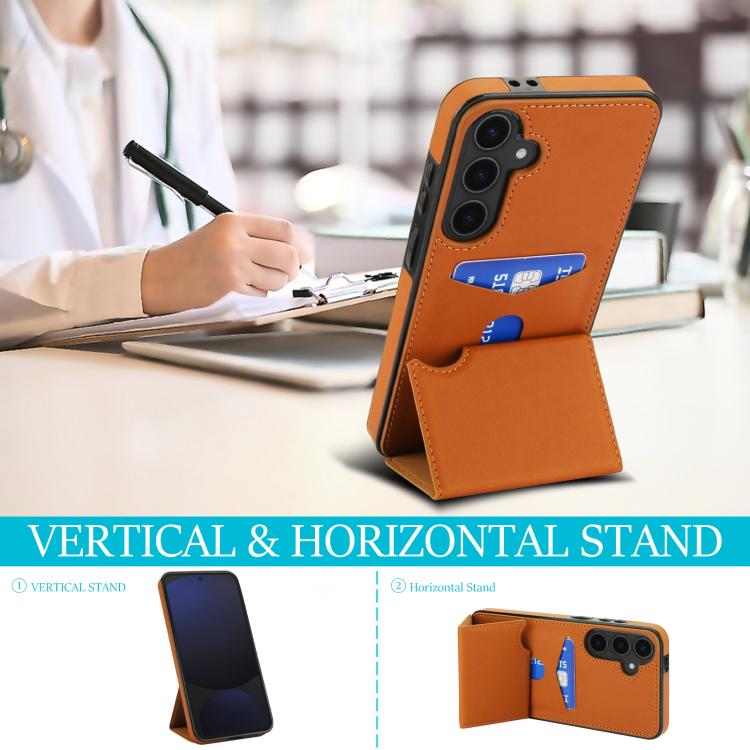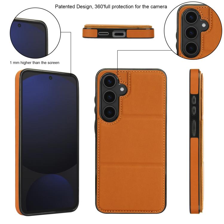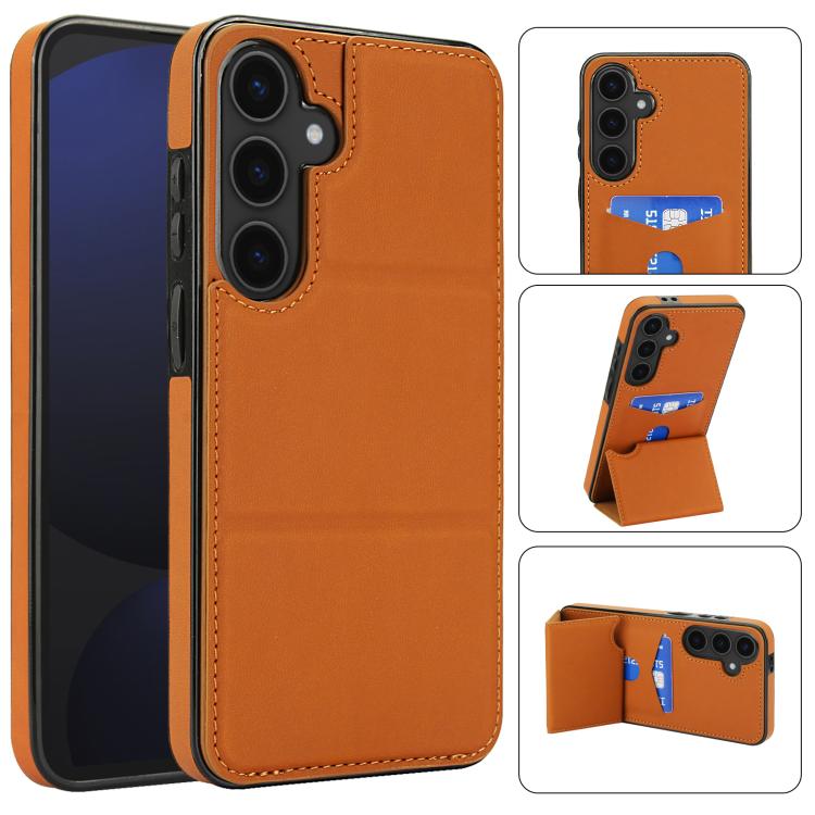 For Samsung Galaxy S25 5G Tri-fold Holder Leather Phone Case with Card Slot(Brown)