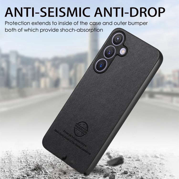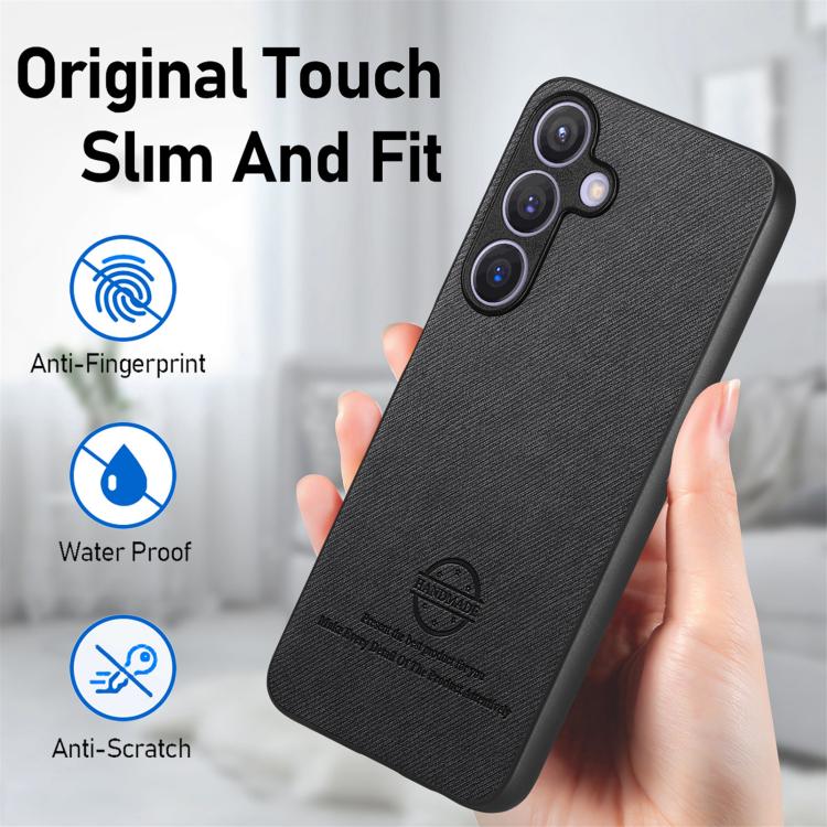 For Samsung Galaxy S25+ 5G Twill Fabric Leather Skin Back Phone Case(Black)