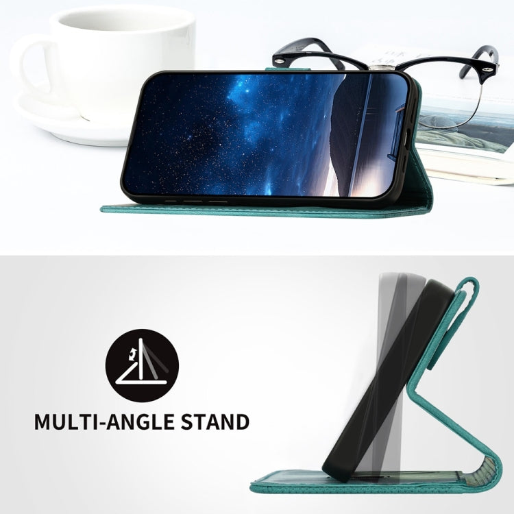 For Samsung Galaxy S25 5G Grid Butterfly Embossed Pattern Leather Phone Case with Lanyard(Light Blue)