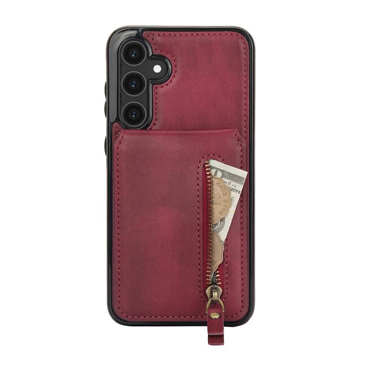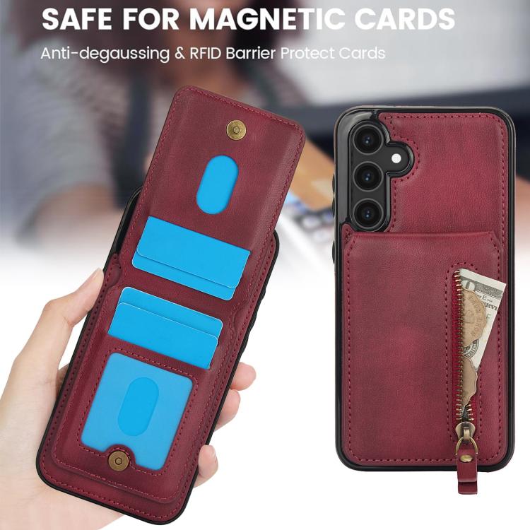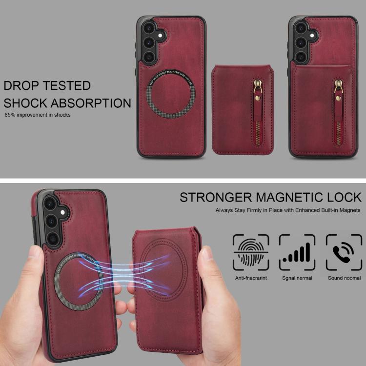 For Samsung Galaxy S25+ 5G Zipper Wallet Split MagSafe Leather Back Phone Case(Red)