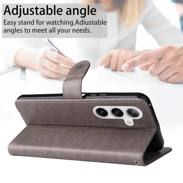 For Samsung Galaxy S25 / S24 5G Cat and Bee Embossed Flip Leather Phone Case(Grey)