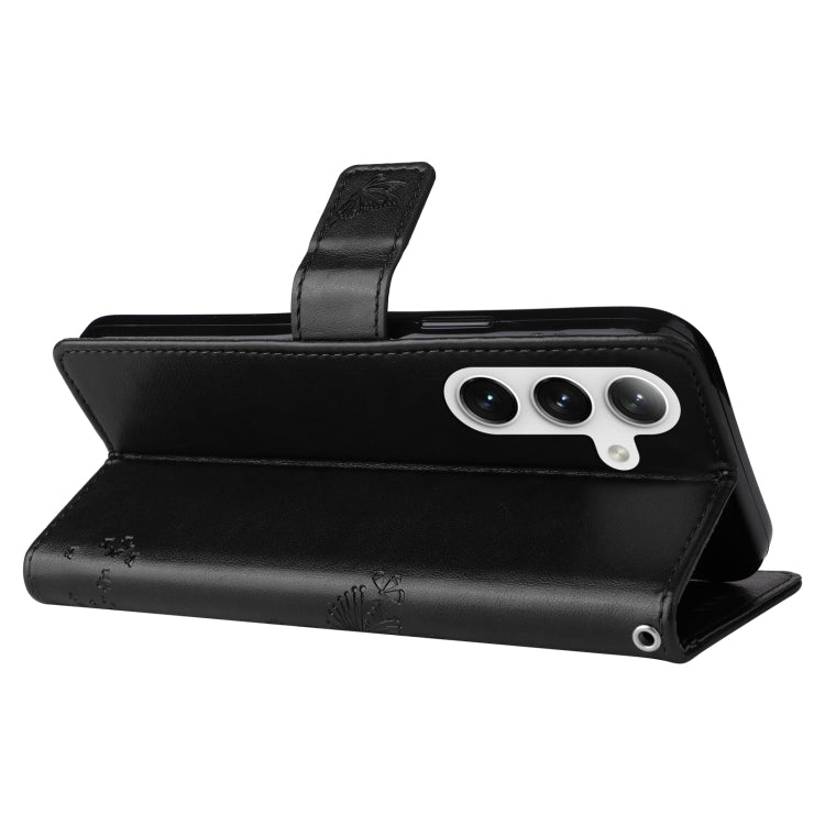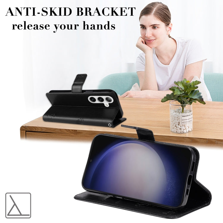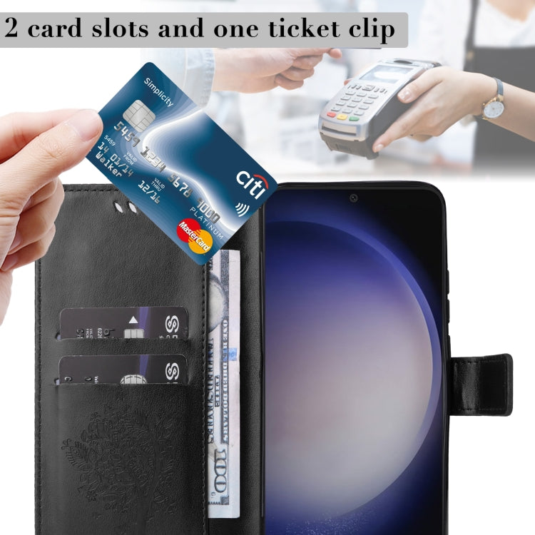 For Samsung Galaxy S25 / S24 5G Tree & Cat Embossed Pattern Flip Leather Phone Case(Black)